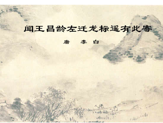 《新唐书·文艺传》载王昌龄左迁龙标(今湖南省黔阳县)尉(古人尚右,故称贬官为左迁),是因为“不护细行”,也就是说,他的得罪贬官,并不是由于什么重大问题,而只是由于生活小节不够检点。在《芙蓉楼送辛渐》中,王昌龄也对他的好友说:“洛阳亲友如相问,一片冰心在玉壶。”即沿用鲍照《白头吟》中“清如玉壶冰”的比喻,来表明自己的纯洁无辜。李白在听到他不幸的遭遇以后,写了这一首充满同情和关切的诗篇,从远道寄给他,是完全可以理解的。
