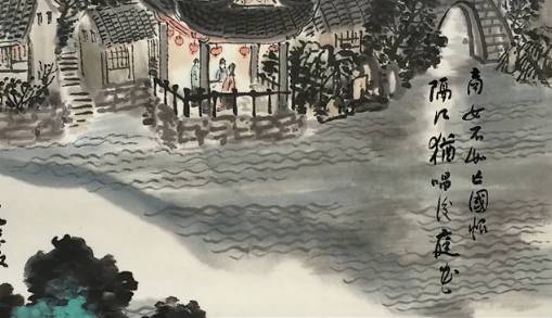 “夜泊秦淮近酒家”,看似平平,却很值得玩味。这句诗内里的逻辑关系是很强的。由于“夜泊秦淮”才“近酒家”。然而,前四个字又为上一句的景色点出时间、地点,使之更具有个性,更具有典型意义,同时也照应了诗题;后三个字又为下文打开了道路,由于“近酒家”,才引出“商女”、“亡国恨”、“后庭花”,也由此才触动了诗人的情怀。因此,从诗的发展和情感的抒发来看,这“近酒家”三个字,就象启动了闸门,那江河之水便汩汩而出,滔滔不绝。这七个字承上启下,网络全篇,诗人构思的细密、精巧,于此可见。