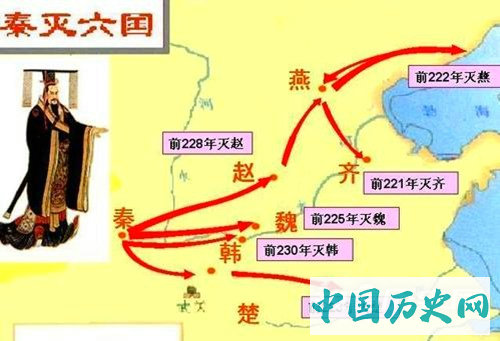 从公元前230年攻打韩国到前221年灭齐国结束,共计10年的时间,先后按顺序消灭韩、赵、魏、楚、燕、齐六国,结束了中国自春秋以来长达500多年的诸侯割据纷争的局面,建立了中国历史上第一个君主中央集权国家,即秦朝。秦朝就是中国历史上第一个统一的中央集权的封建王朝。
