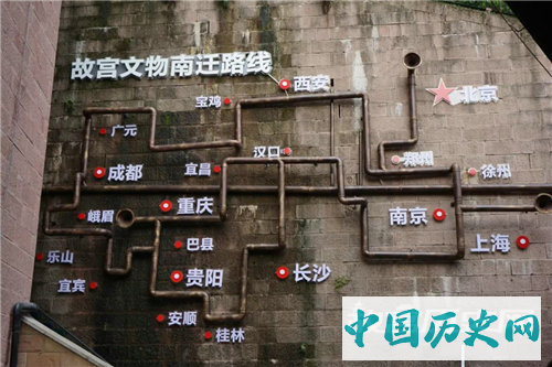 第一批运出的文物沿长江水路到达汉口(武汉附近),然后用火车运到长沙。几个月内,长沙也危险了,这些箱子又经广西运至贵州——不久,长沙原来存放这些箱子的图书馆就被一颗炸弹夷为平地。